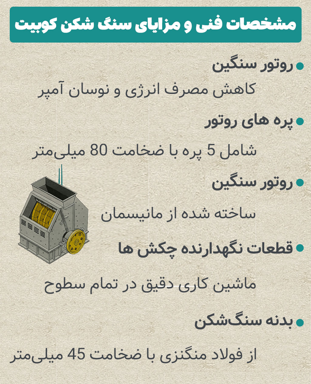 انتخاب صحیح سنگ شکن کوبیت با توجه به ظرفیت خط تولید، ساختار دستگاه و نوع سنگ ورودی، تأثیر مستقیمی بر کیفیت محصول نهایی و بهره وری فرآیند خردایش دارد. دقت در انتخاب مدل مناسب و توجه به قابلیت های تنظیم دانه بندی خروجی، می تواند هزینه های عملیاتی را کاهش داده و عمر مفید دستگاه را افزایش دهد.